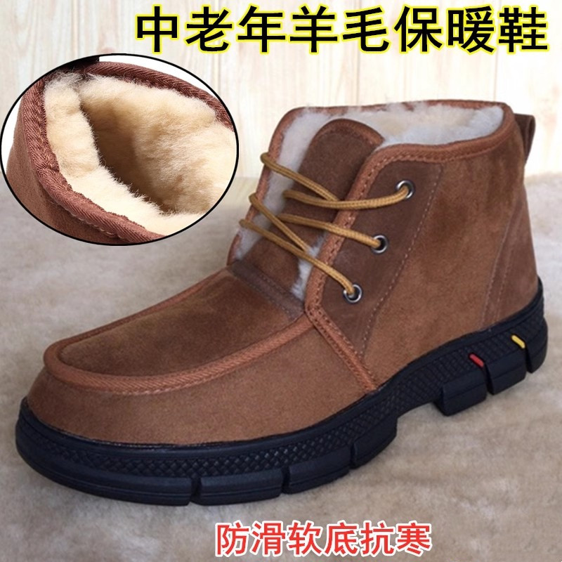 冬季防寒雪地靴男纯羊皮毛一体保暖加绒中老年羊毛爸爸鞋男式棉鞋