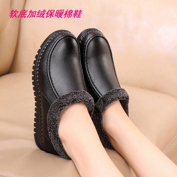 中老年妈妈棉鞋软底舒适加绒保暖低帮女鞋老人棉皮鞋防寒真皮冬鞋