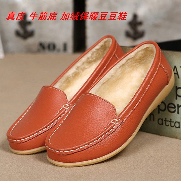 秋冬真皮护士女鞋加绒保暖豆豆鞋牛筋底防滑中老年妈妈鞋平底棉鞋