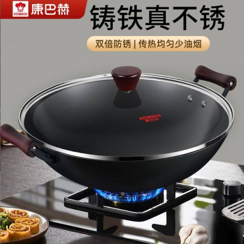 康巴赫铁锅家用炒菜锅电磁炉专用炼石纹铸铁锅炒锅无涂层燃气通用