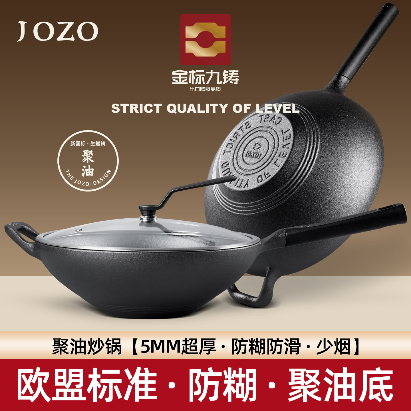 九铸欧标铸铁锅炒锅无涂层不粘锅生铁炒菜锅平底燃气灶电磁炉家用