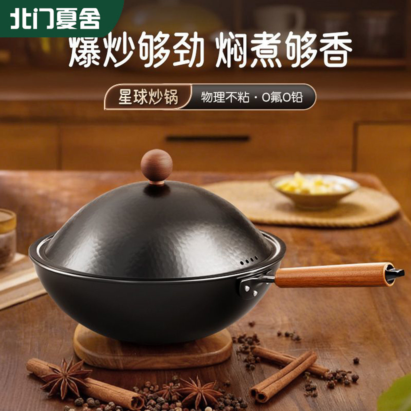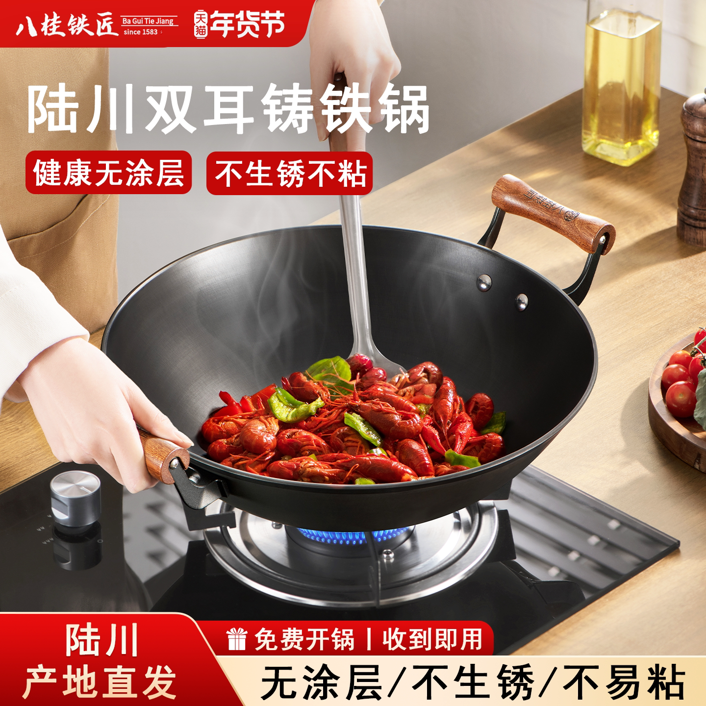 铁工房铸铁锅炒锅家用生铁炒菜锅无涂层燃气电磁炉通用窒氮易养护