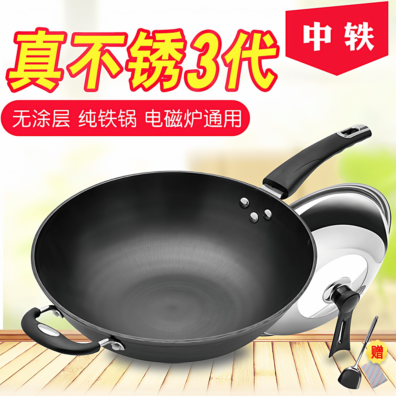 新品苏泊尔有钛铁锅铁不粘无涂层钛锅家用炒锅不粘锅炒菜锅铸铁锅