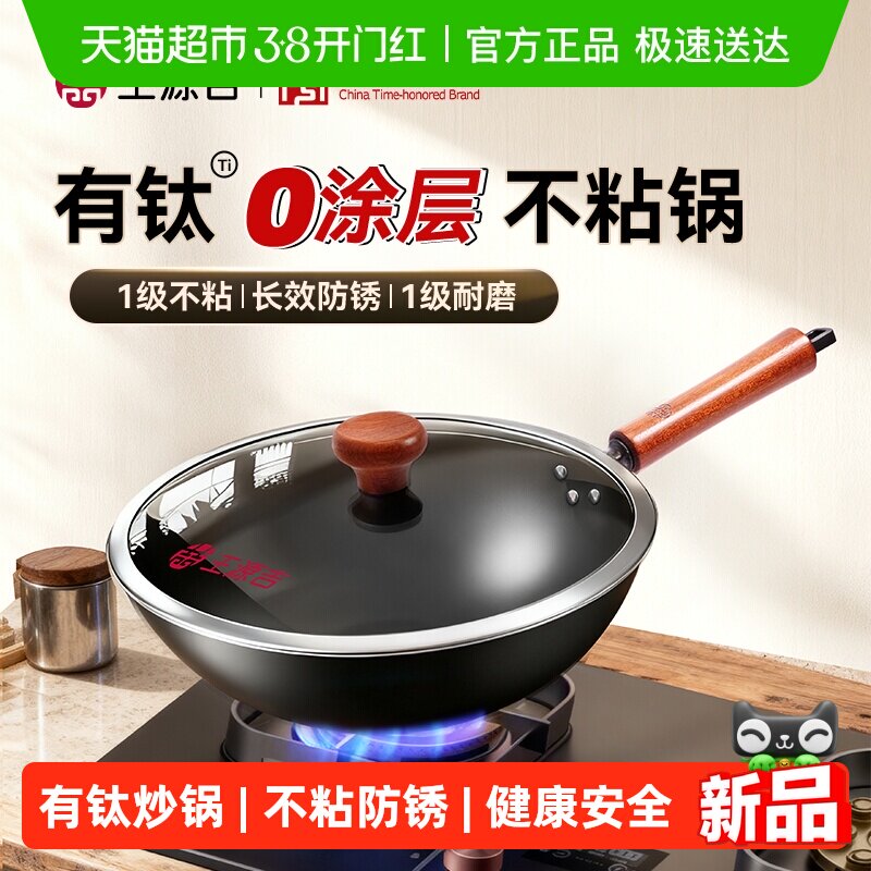 王源吉铸铁锅炒锅家用炒菜锅无涂层不粘锅电磁炉煤气灶专用钛铁锅