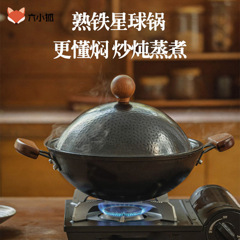 双耳星球铸铁锅炒锅无涂层不粘锅加深家用老式炖煮炒菜纯铁锅加厚