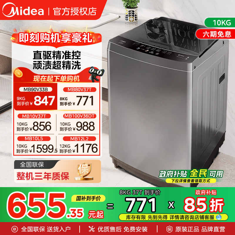 【全民补贴】美的直驱变频10公斤全自动家用大容量8kg波轮洗衣机