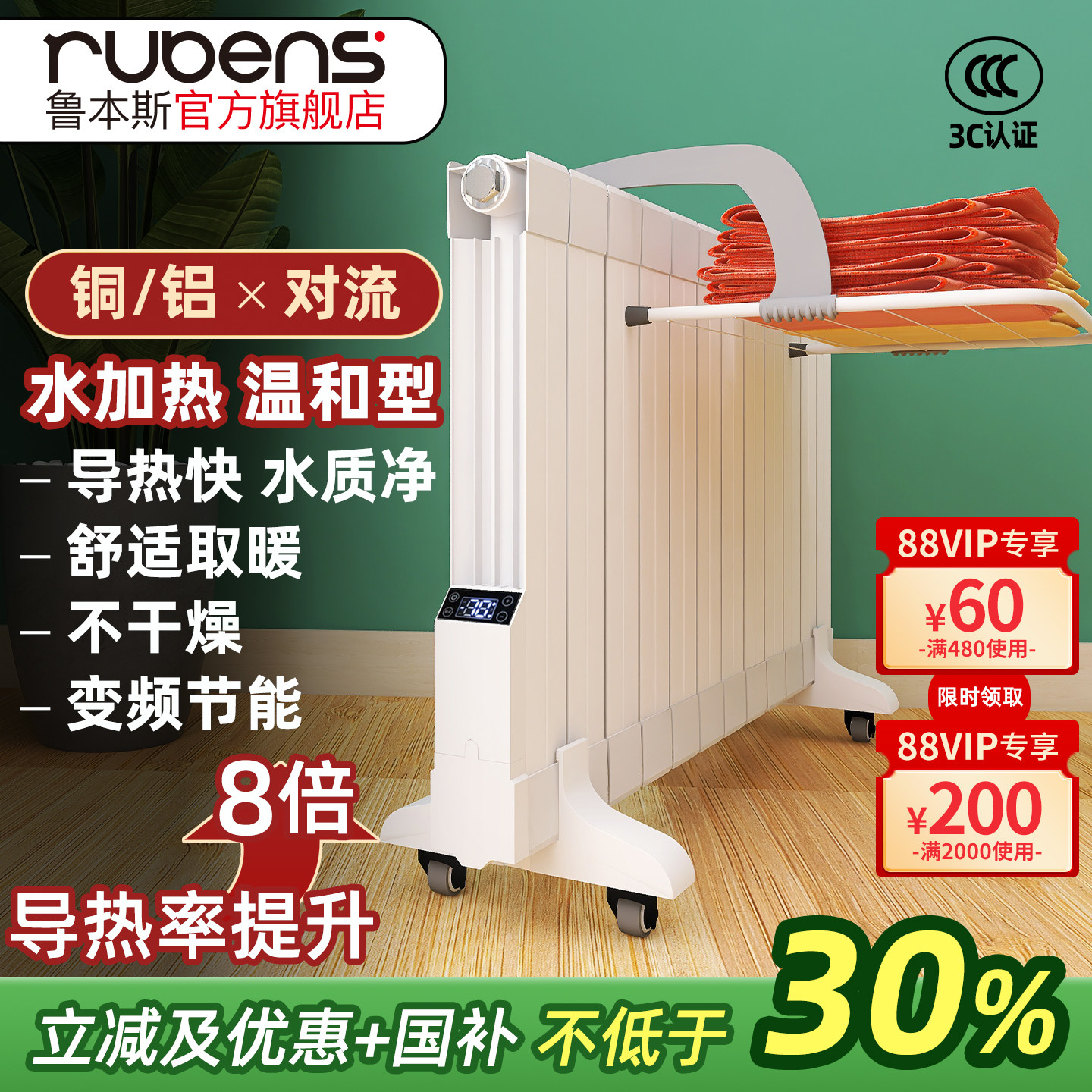 鲁本斯注水式电暖气片取暖器家用插电节能加水循环电暖器散热器片