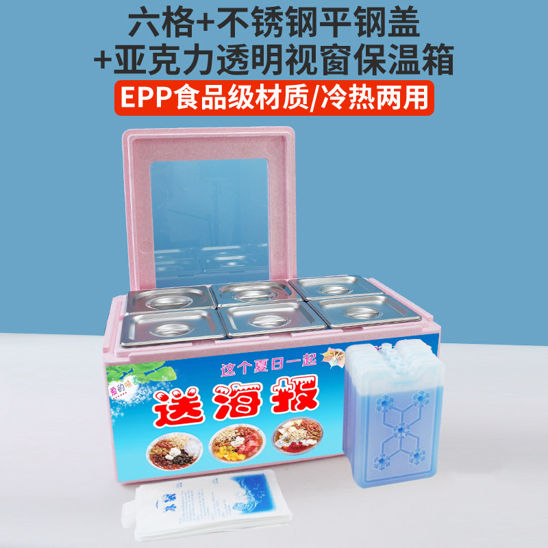 摆摊冷藏保温箱冰粉配料水果捞展示盒透明翻盖保鲜可视盖不锈钢盒
