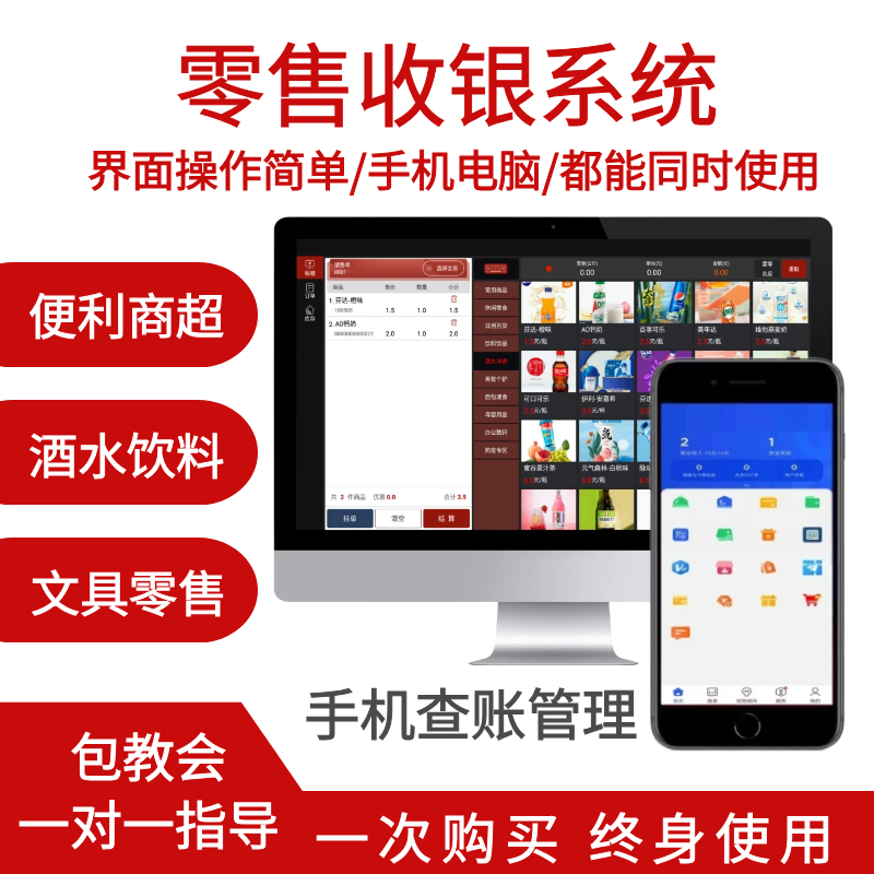 收银系统超市零售便利店服装店饭店充值储值积分餐饮美发理发会员卡进销存管理软件商用收款机电脑一体收银机