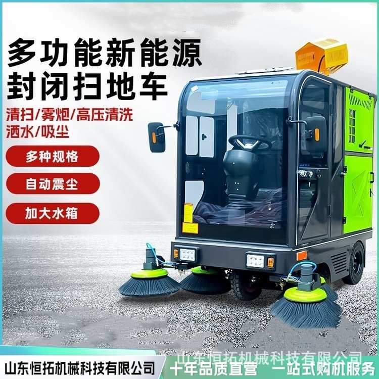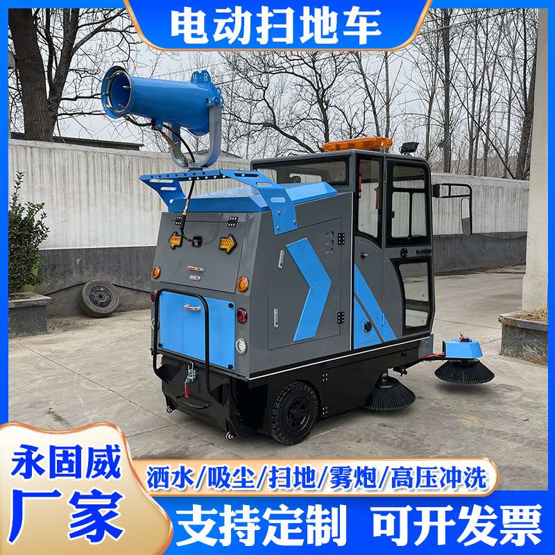 炮雾抑尘扫吸一体式电动扫地车 全封闭驾驶式扫地车多功能清扫车