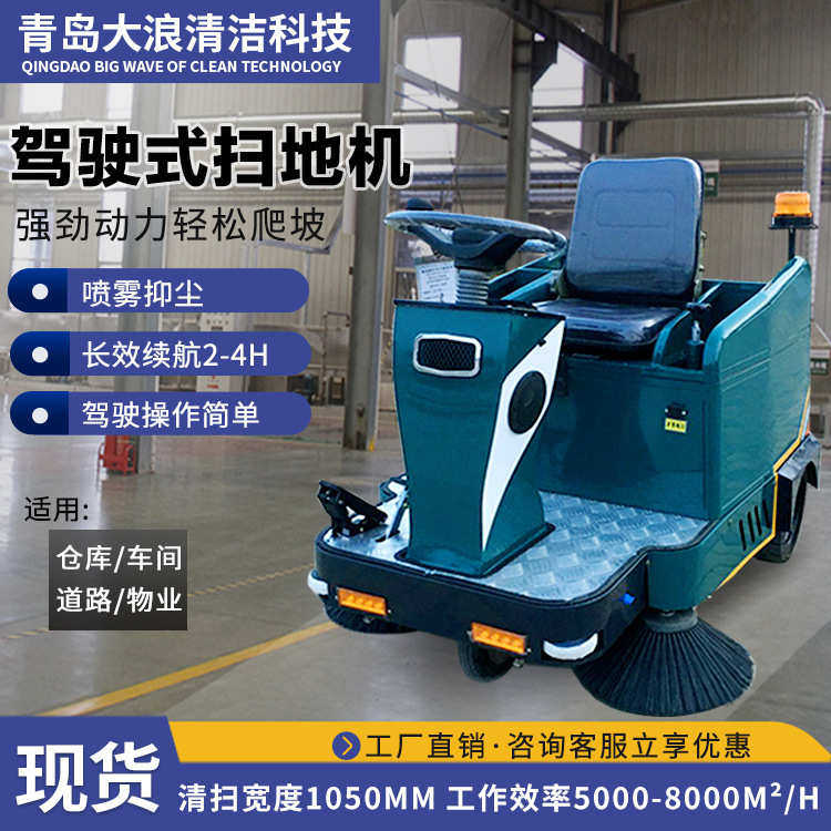 大型环尘卫洁车物闭业用全封驾驶式扫地车道路965吸工业电动扫清