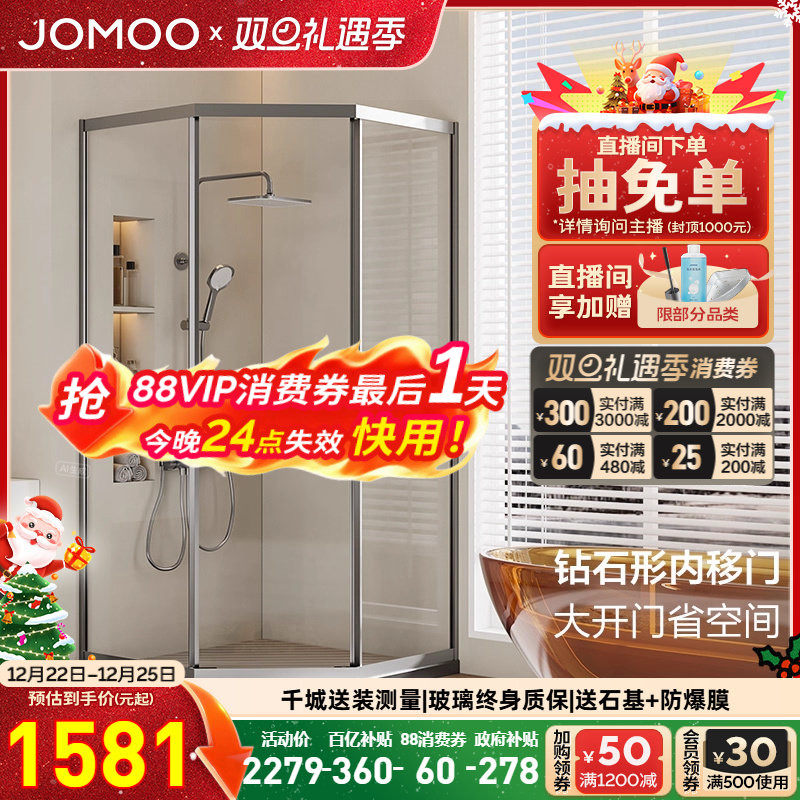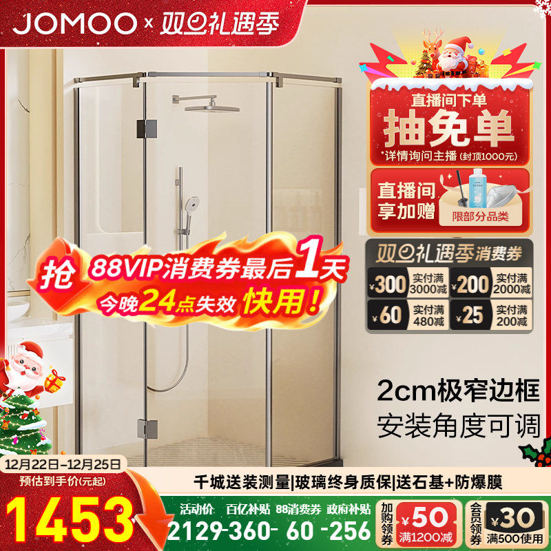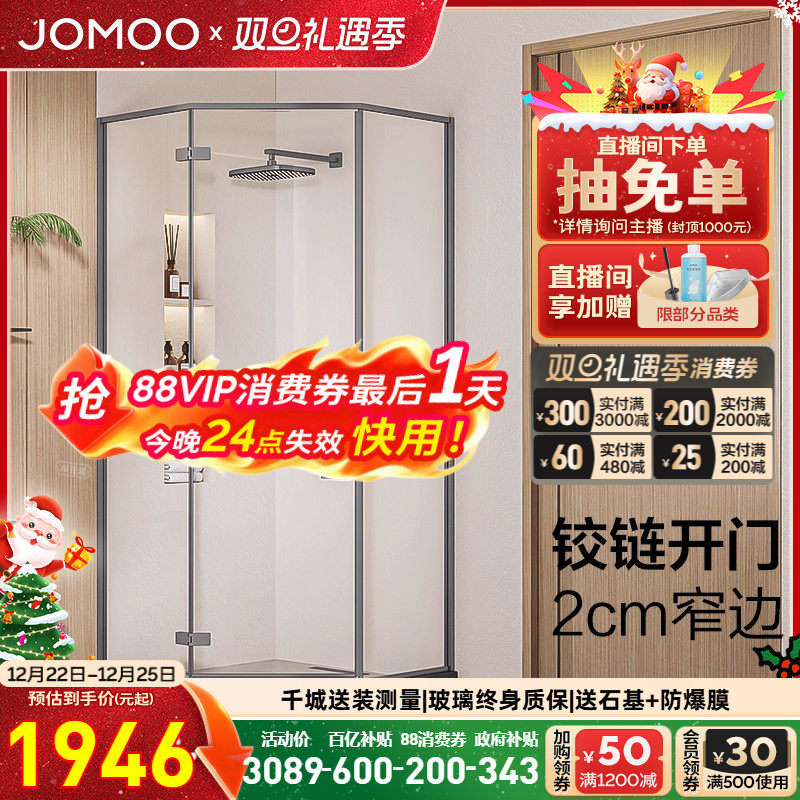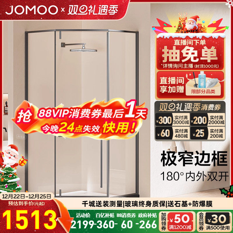 【定制】九牧不锈钢极窄钻石形外开门整体淋浴房铰链隔断E18系列