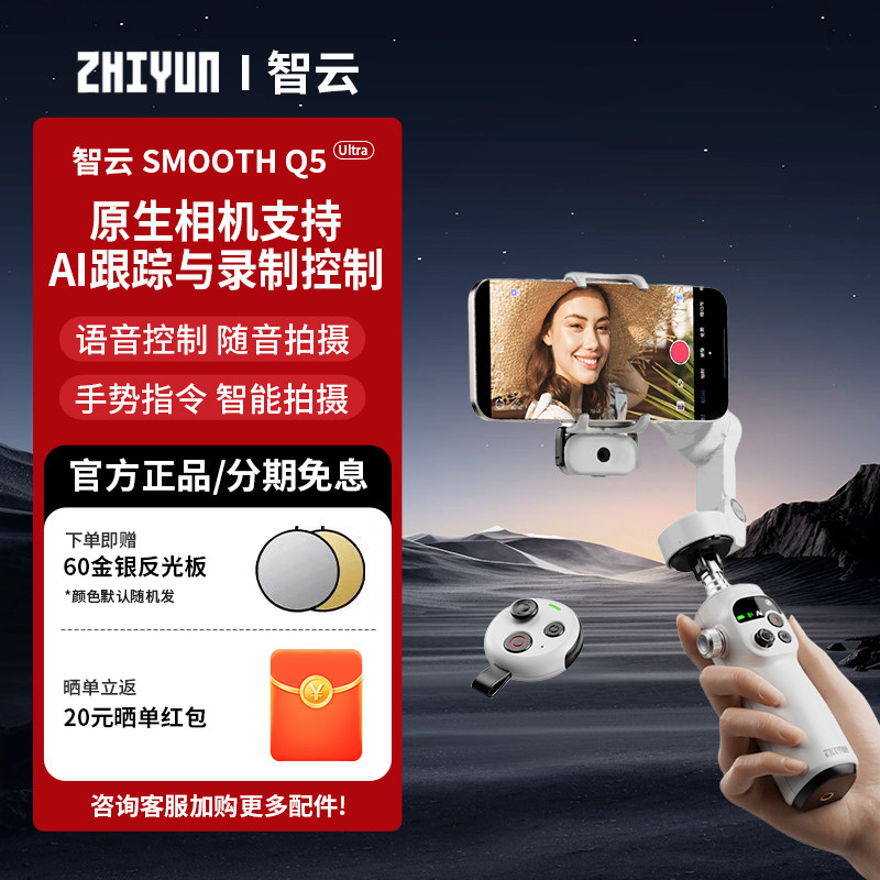 智云Q5 Ultra手机云台稳定器三轴防抖AI智能追踪手持可折叠便携全场景拍照直播vlog拍摄神器