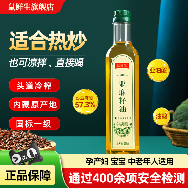 纯亚麻籽油冷榨一级500ml孕妇宝宝热炒油送婴儿辅食 谱官方旗舰店