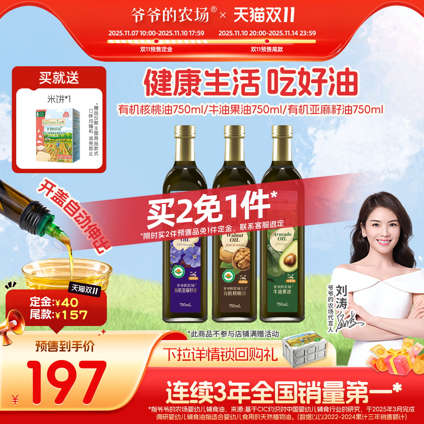 【双11预售】爷爷的农场有机核桃油牛油果油亚麻籽油老人宝宝孕妇