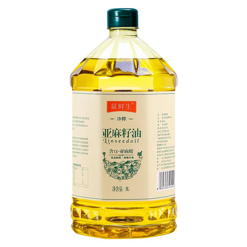 鼠鲜生纯一级冷榨亚麻籽油5L孕妇宝宝中老年热炒食用油官方旗舰店