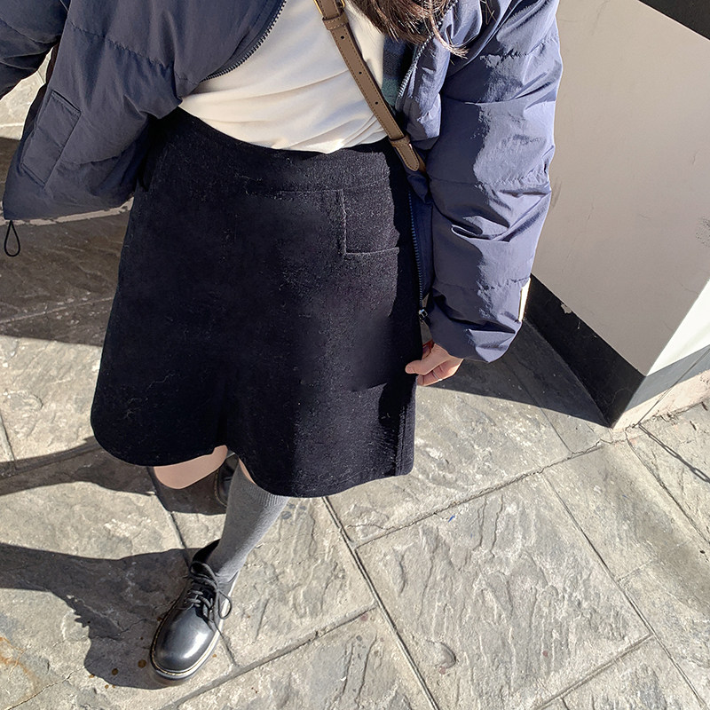 - 毛呢高腰半身裙短裙秋冬