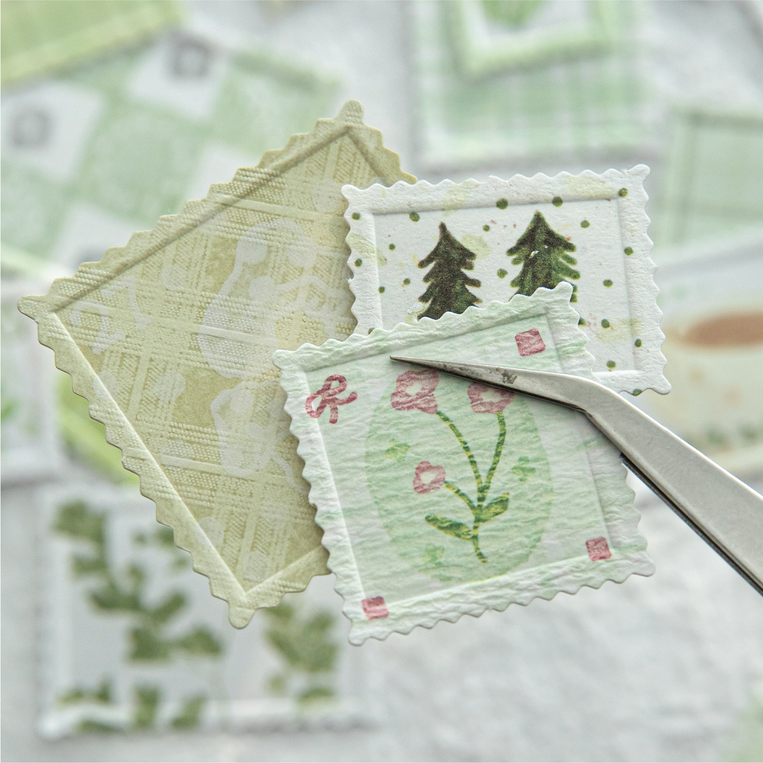 纸间邮票特种纸凸版浮雕邮票贴纸包盐色集市6款20张复古打底贴
