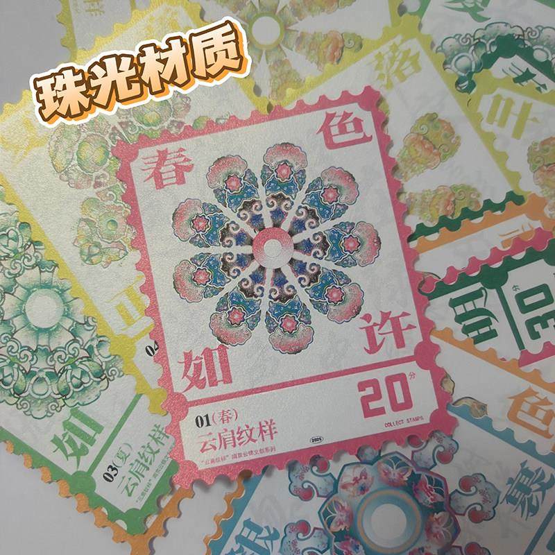 特种珠光材质邮票异形贴画打印logo不干胶定制毕设邮票贴纸打印