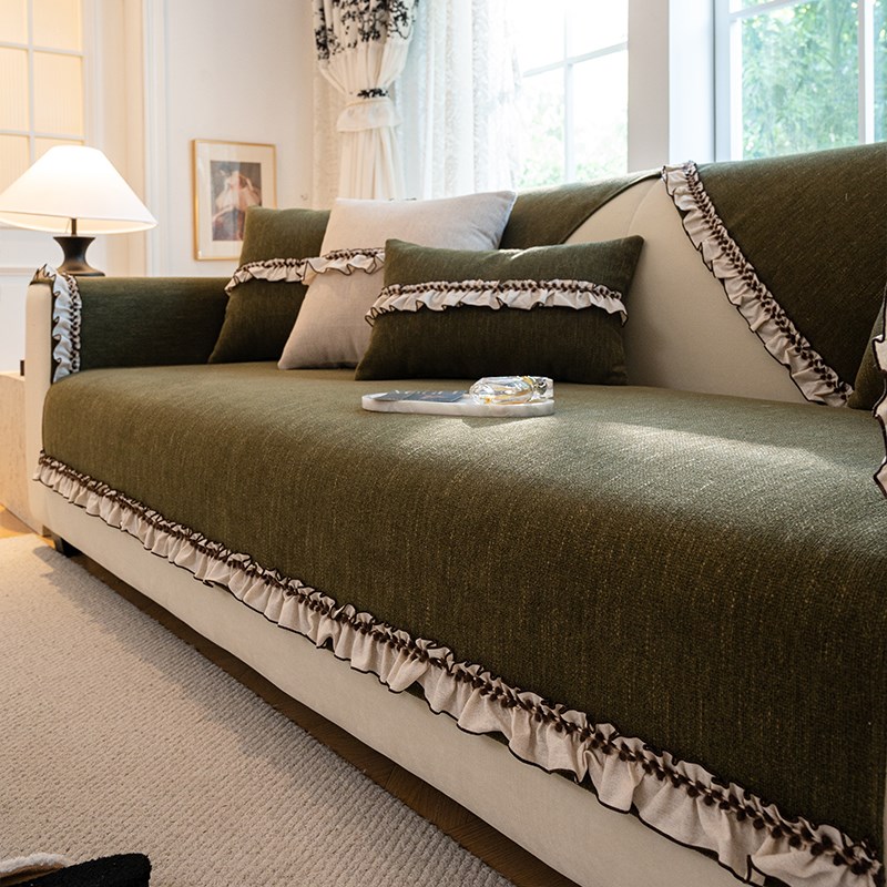全棉绗缝沙发垫坐垫子防滑布艺加厚田园四季通用纯棉皮沙发巾罩套