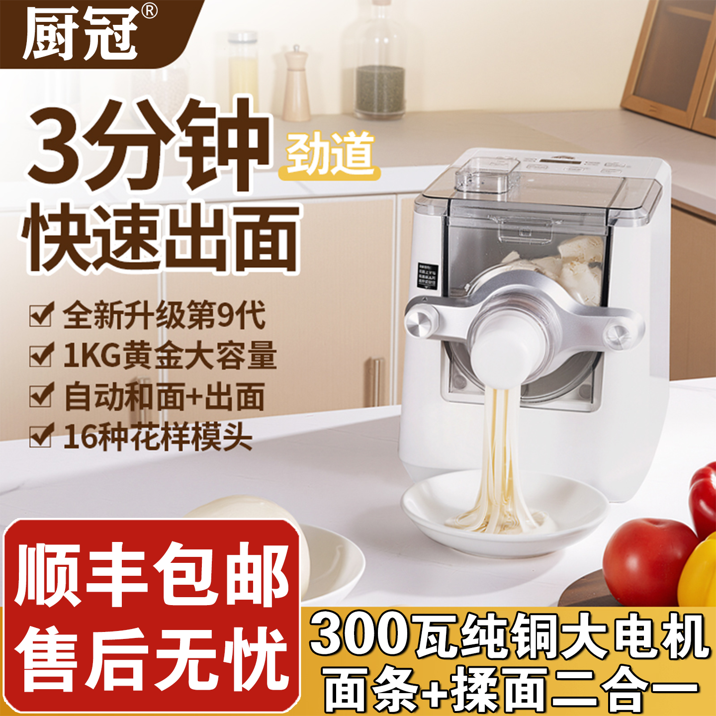 厨冠面条机家用全自动第10代智能多功能压面机小型和面机2025新款