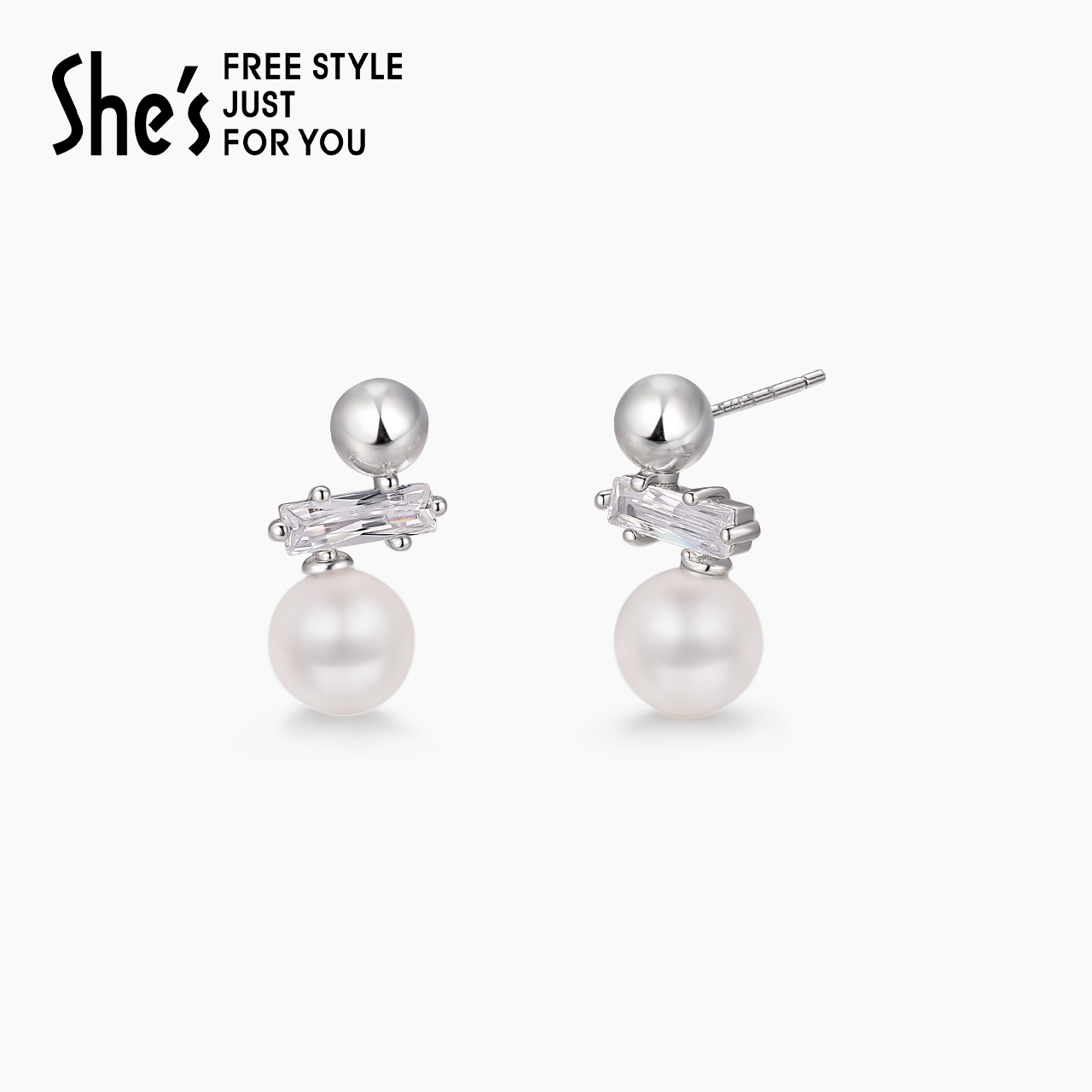 shes茜子巴比耶序曲轻奢原创时尚珍珠耳环925银针耳钉潮流耳饰品
