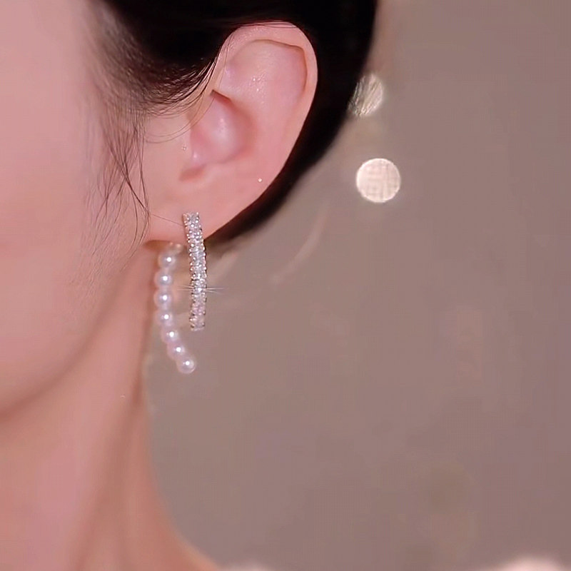 日韩前后戴水晶仿珍珠耳环925银针耳钉小众设计感高级2023年新款