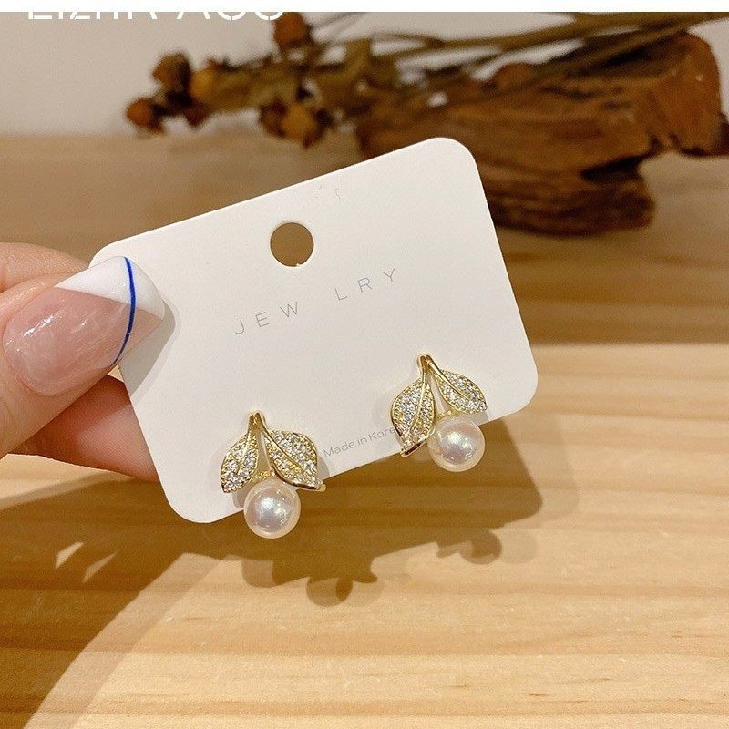 s925银针耳饰小巧精致锆石烟花珍珠耳钉四件套轻奢气质百搭耳环女