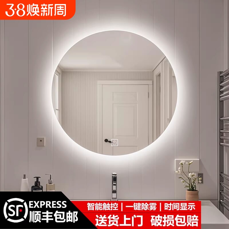 led圆形智能镜卫生间浴室镜子可挂墙式洗手台镜防雾防爆高清银镜