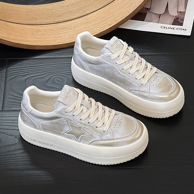 真皮休闲擦色做旧小白鞋厚底松糕小脏鞋面包大头星星牛皮板鞋女款