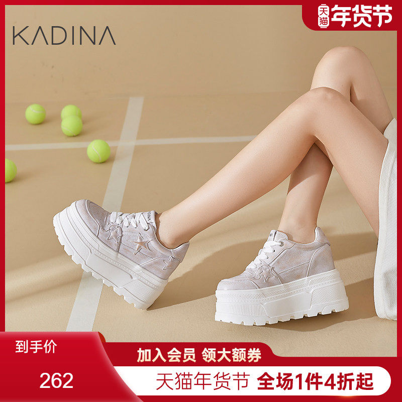 卡迪娜2025年复古星星厚底松糕底增高小白鞋休闲鞋女KWCS250103