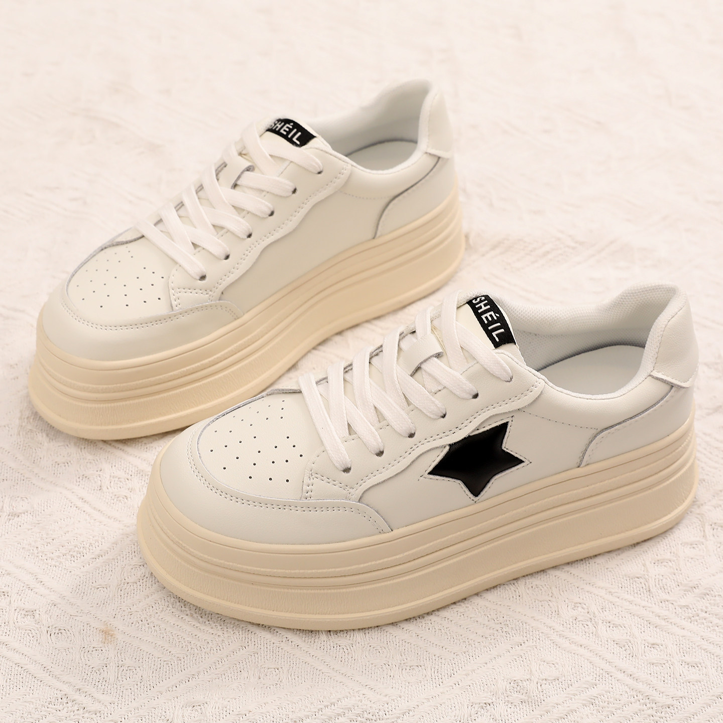 高板真皮五角星星厚底小白鞋女25春新款松糕增高5cm运动休闲鞋潮