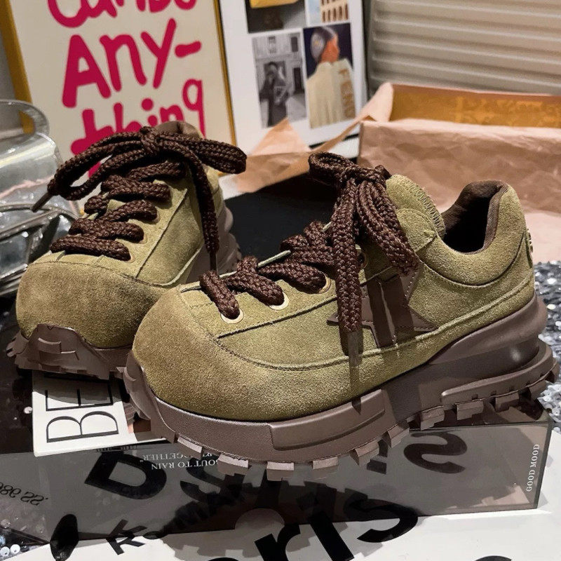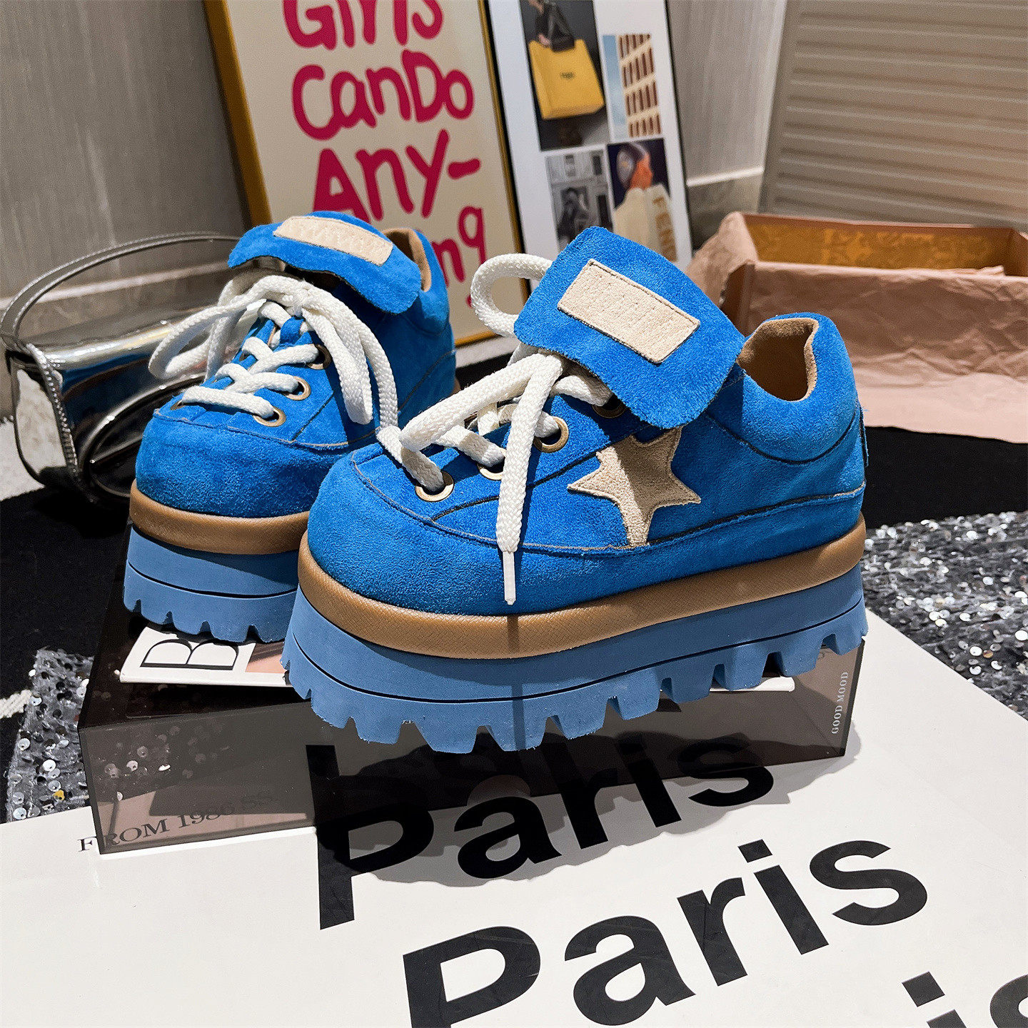 欧货磨砂皮星星系带休闲鞋女2025新款厚底松糕板鞋德训鞋老爹鞋女