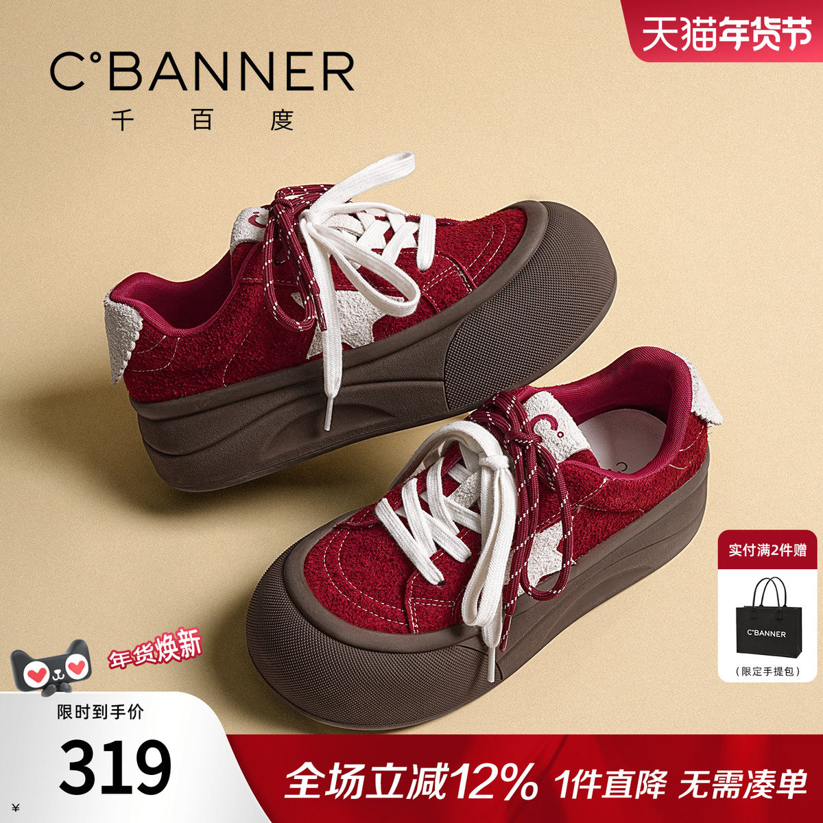 千百度休闲鞋松糕系带新款厚底增高复古拼色款潮流星星鞋百搭板鞋
