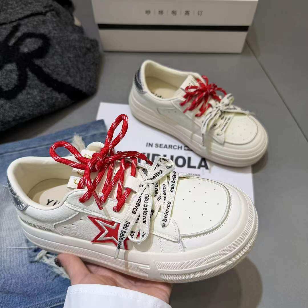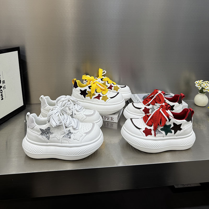 学生爆款星星板鞋2025年春季新款厚底小白鞋洋气休闲松糕运动女鞋
