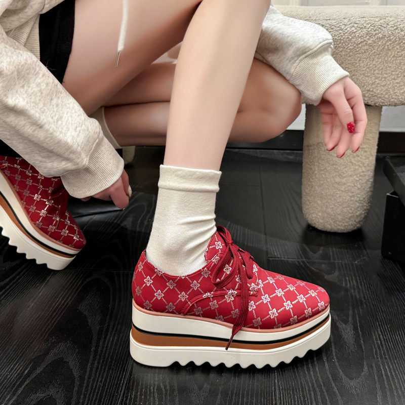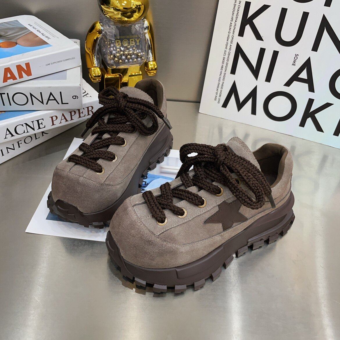 欧货系带翻领星星卡皮巴拉面包鞋厚底松糕休闲板鞋小个子6cm女鞋