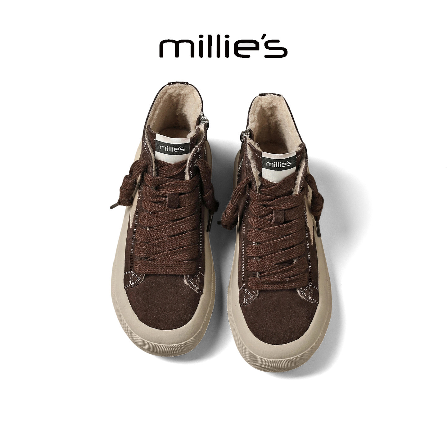 MILLIE'S/妙丽真皮加绒百搭休闲板鞋时尚松糕鞋系带星星鞋棉鞋子