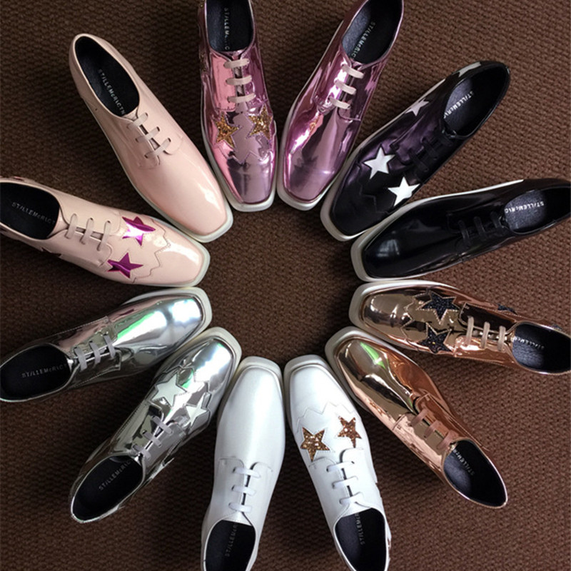 明星同款2026春秋新款星星松糕厚底韩版系带方头坡跟单鞋女英伦风