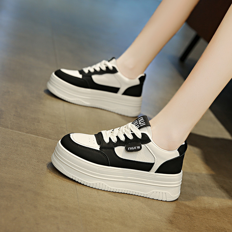 黑白百搭小白鞋女厚底增高6cm休闲运动单鞋2026春新款软底松糕鞋