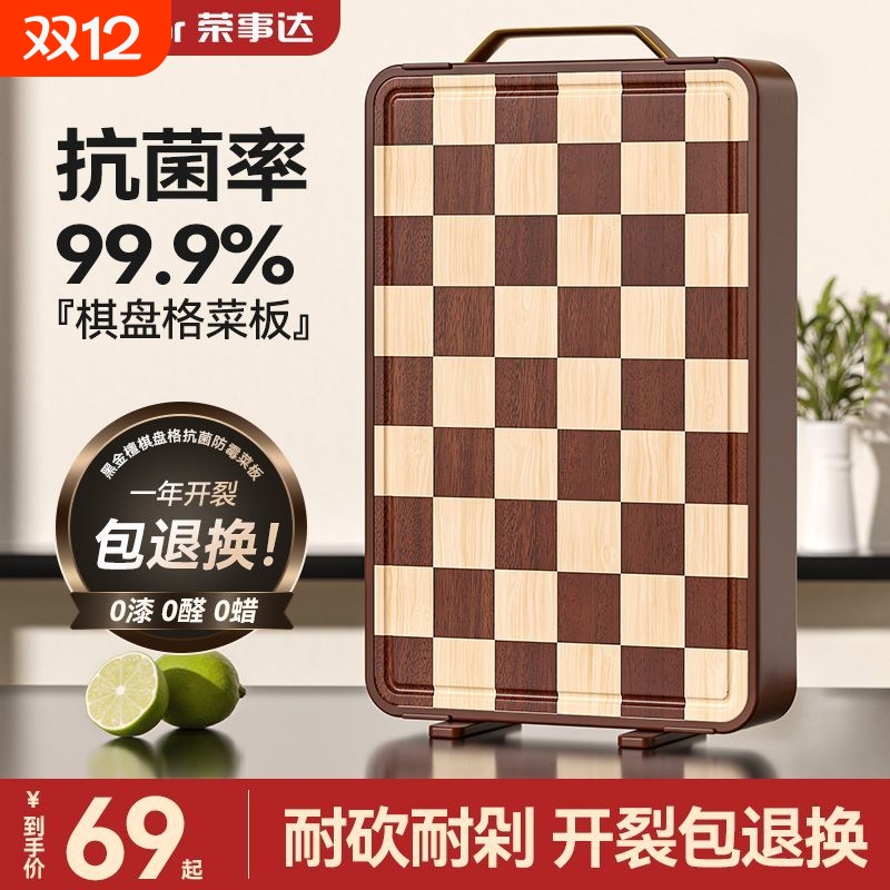 荣事达棋盘格菜板实木厨房专用家用抗菌防霉切菜板木菜板砧板案板