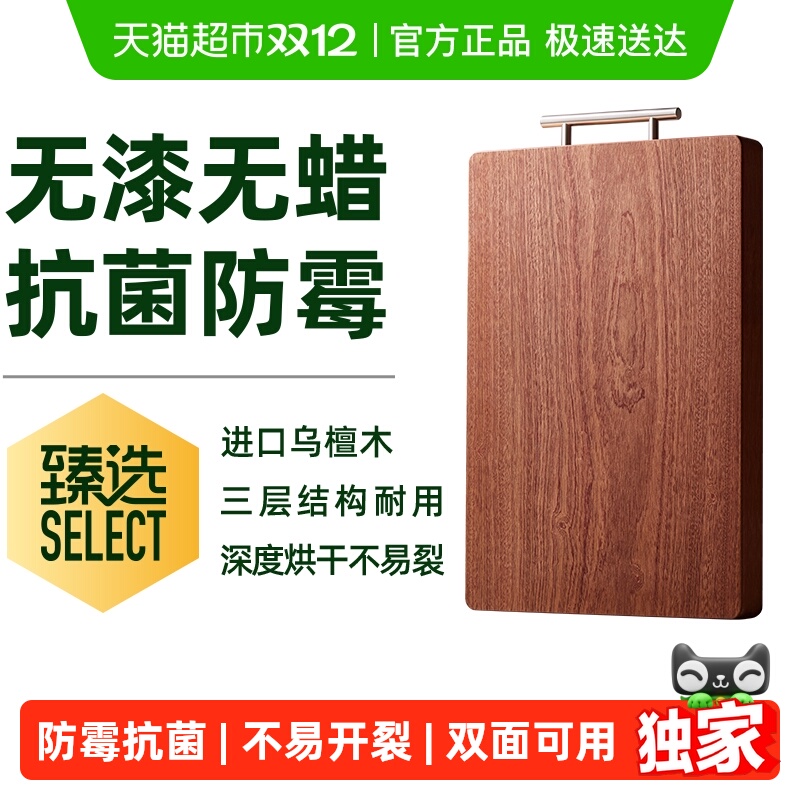 乌檀木菜板实木抗菌防霉家用砧板木质案板抑菌双面切菜板厨房便捷