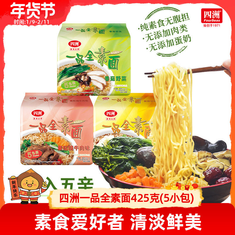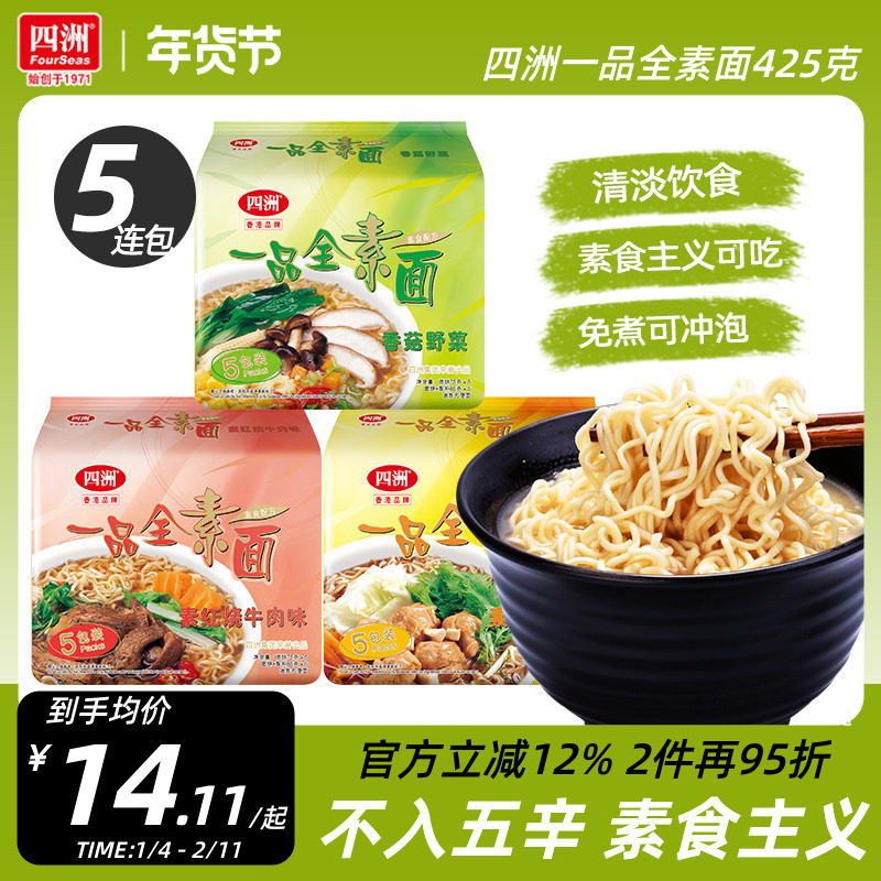 四洲素方便面即食素面冲泡免煮泡面充饥香菇野菜素食不入五辛5包