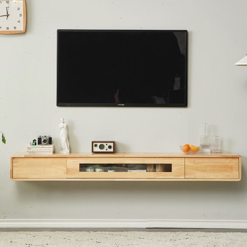 实木悬空壁挂式电视柜简易客厅极简上墙原木风小S户型悬浮挂壁悬