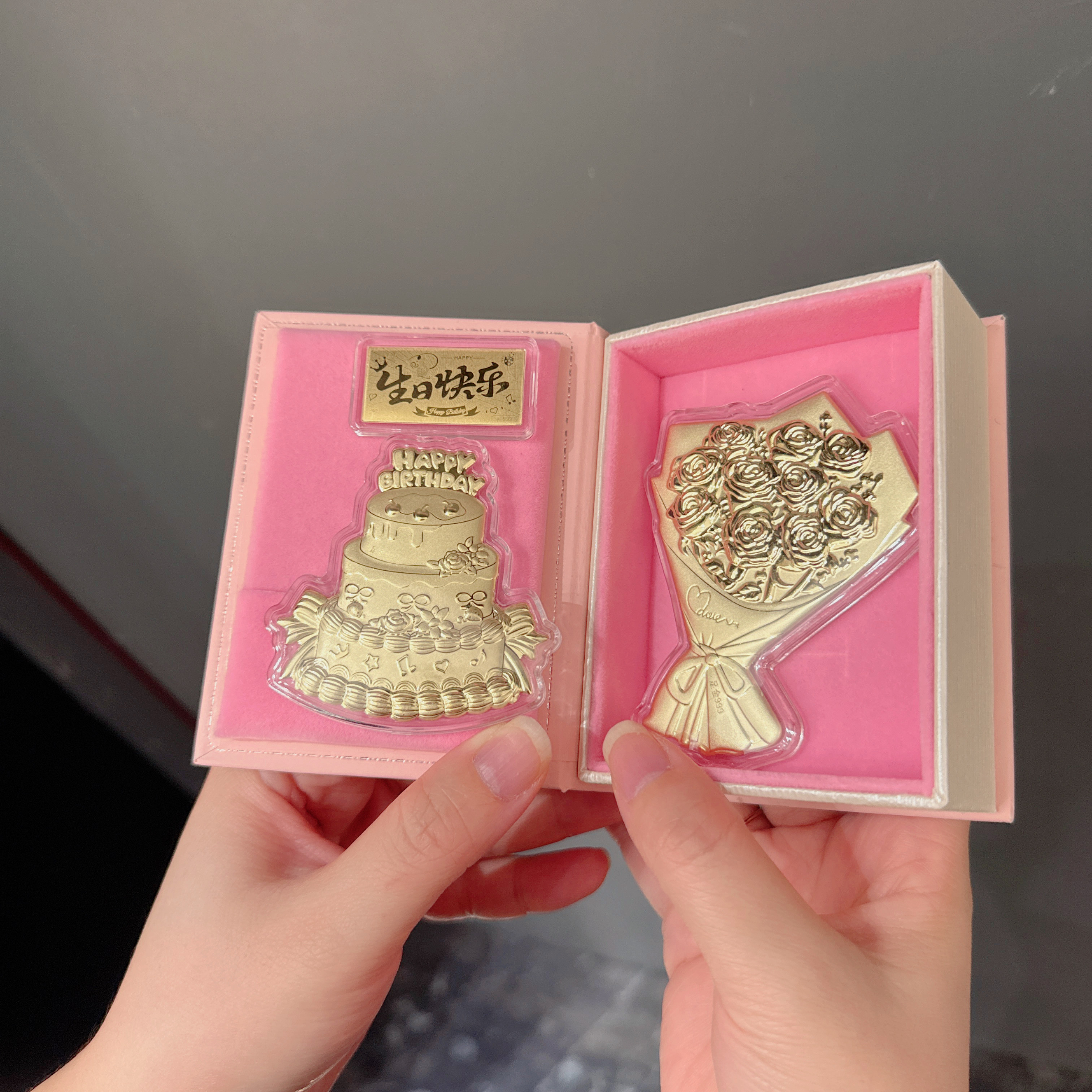 水贝黄金生日快乐玫瑰花蛋糕足金七夕新婚快乐高档礼盒送女友闺蜜