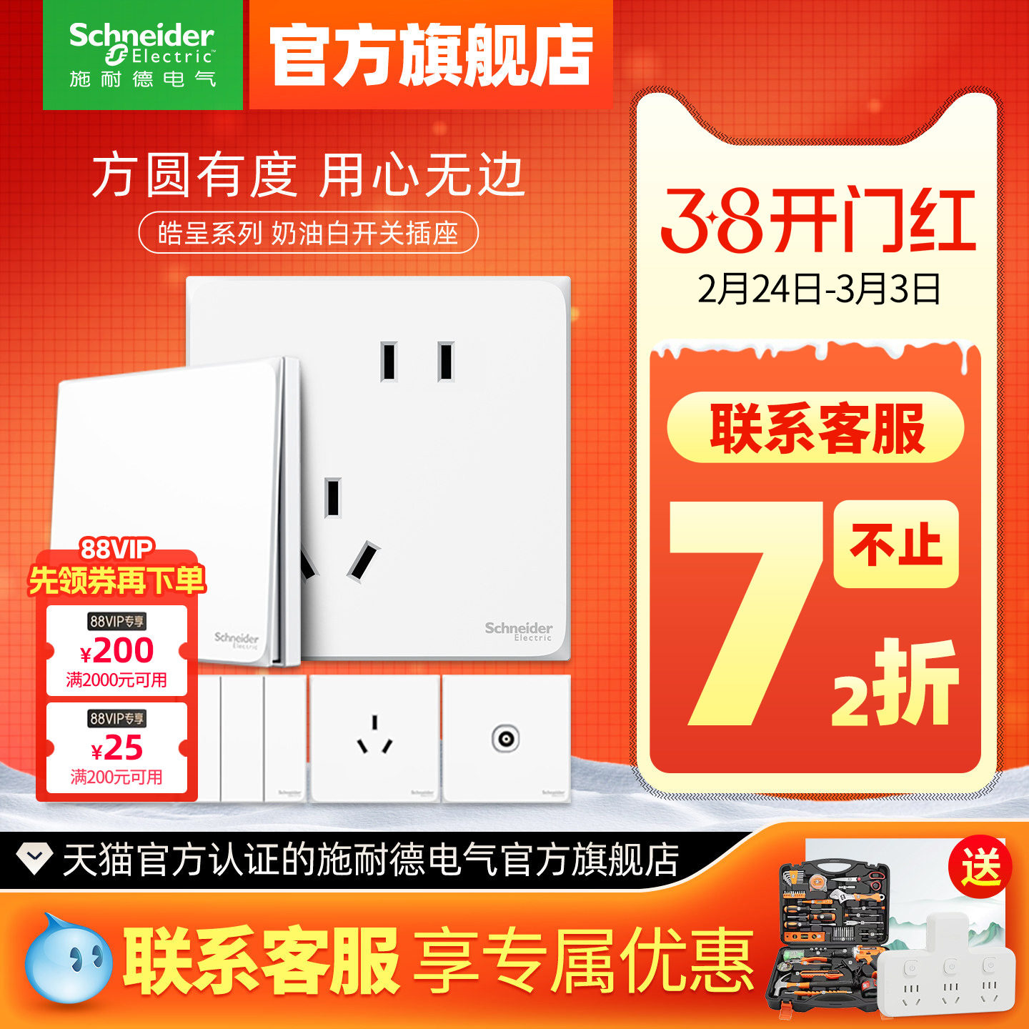施耐德旗舰店超薄皓隽开关五孔墙壁插座面板16a插座哑光白色银色