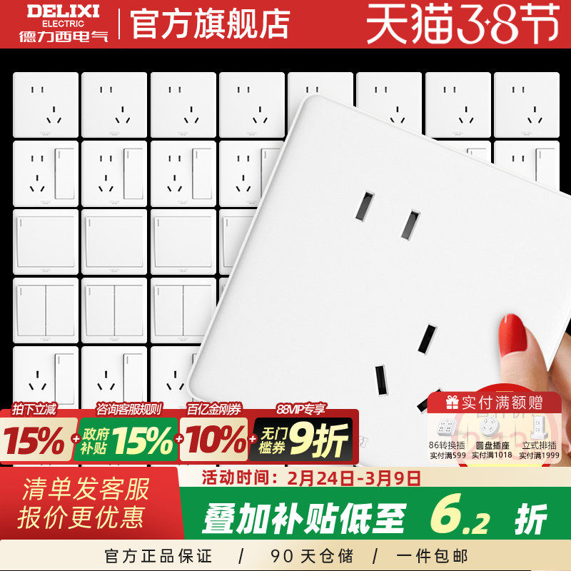 德力西五孔16A插座家用六孔大功率热水器空调面板二位双3孔86暗装