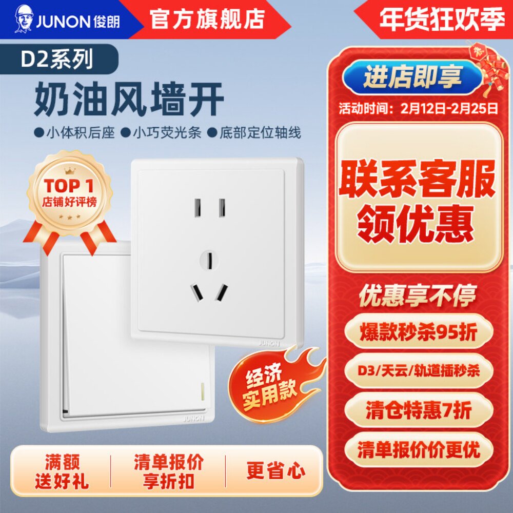 俊朗插座旗舰店开关插座空调16A插座五孔10A面板暗装多孔86型D2白