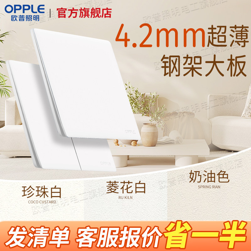 欧普照明超薄哑光开关插座面板奶油风五孔16a插座T02致享肤感白