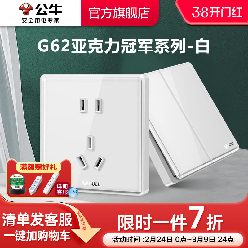 公牛插座旗舰店开关插座空调16A插座五孔插座10A面板暗装G07金