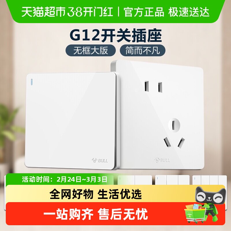 公牛插座旗舰店开关插座空调16A插座五孔插座10A面板暗装G28白